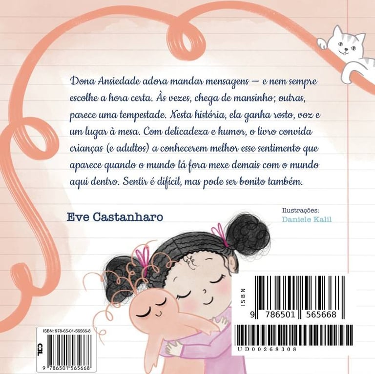 O livro A mensagem da Dona Ansiedade para você é uma carta da Dona Ansiedade para a criança que você é, foi ou ainda sente que é. Às vezes, ela chega de repente. Assusta. Confunde. Mas também carrega mensagens importantes. E se a gente parasse para escutar? Nesta história feita de afeto e amizade, palavras e ilustrações se unem para mostrar que até as emoções difíceis merecem acolhimento. Porque sentir é parte da vida — e aprender a lidar com o que sentimos pode ser libertador.